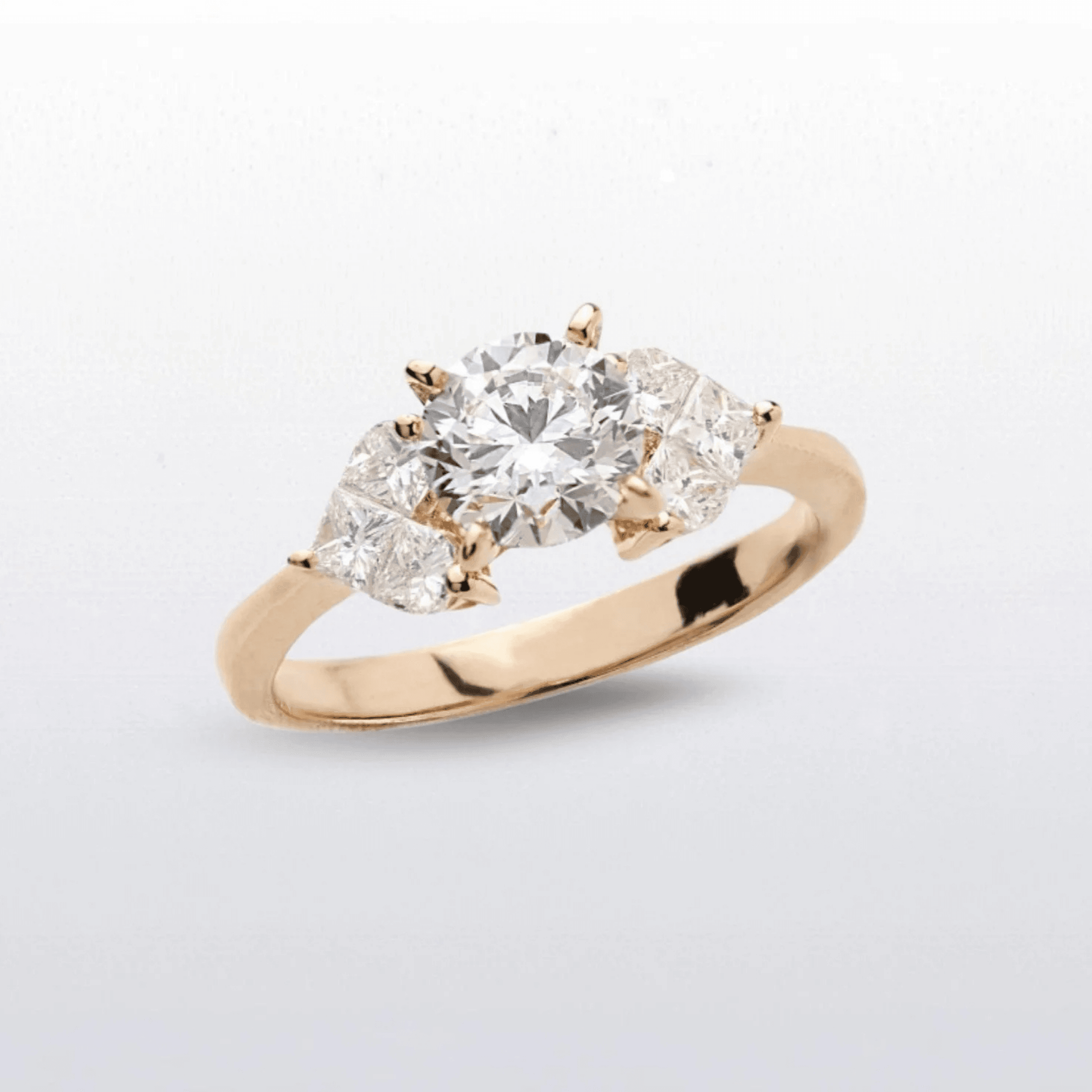 This timeless ring features a 1.00ct, “H” colour, VS2 round brilliant diamond at its centre, accented by side stones for added sparkle and balance. Set in warm 18K yellow gold, it embodies classic elegance and enduring beauty — a perfect symbol of love’s past, present, and future.