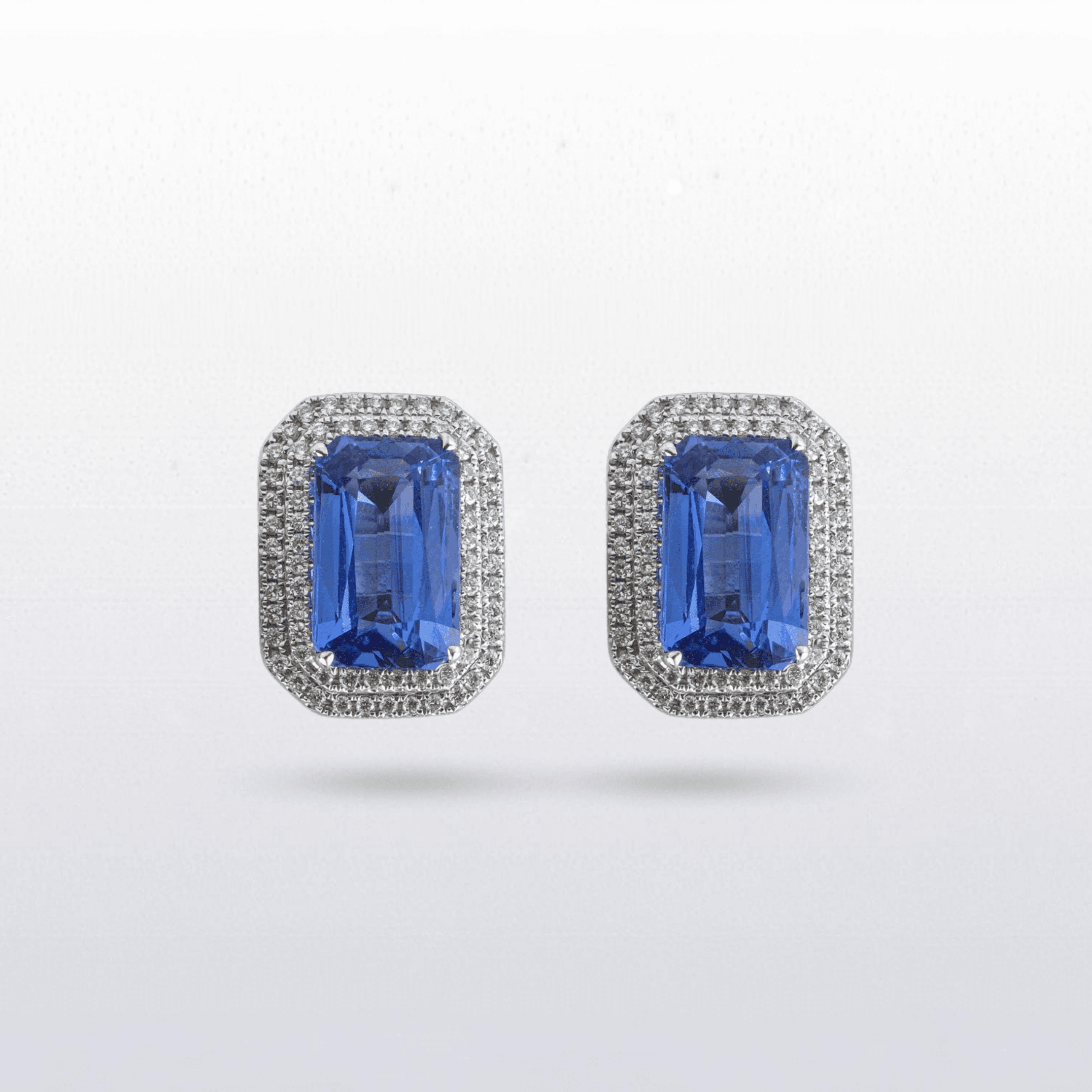 A timeless pair of earrings featuring striking tanzanites framed by two rows of brilliant diamonds. The vivid blue-violet hue of the gemstones is beautifully complemented by the radiance of the diamond halos, creating a refined yet captivating presence. Perfect for evening occasions or special celebrations, these earrings add a luxurious touch that never goes unnoticed.