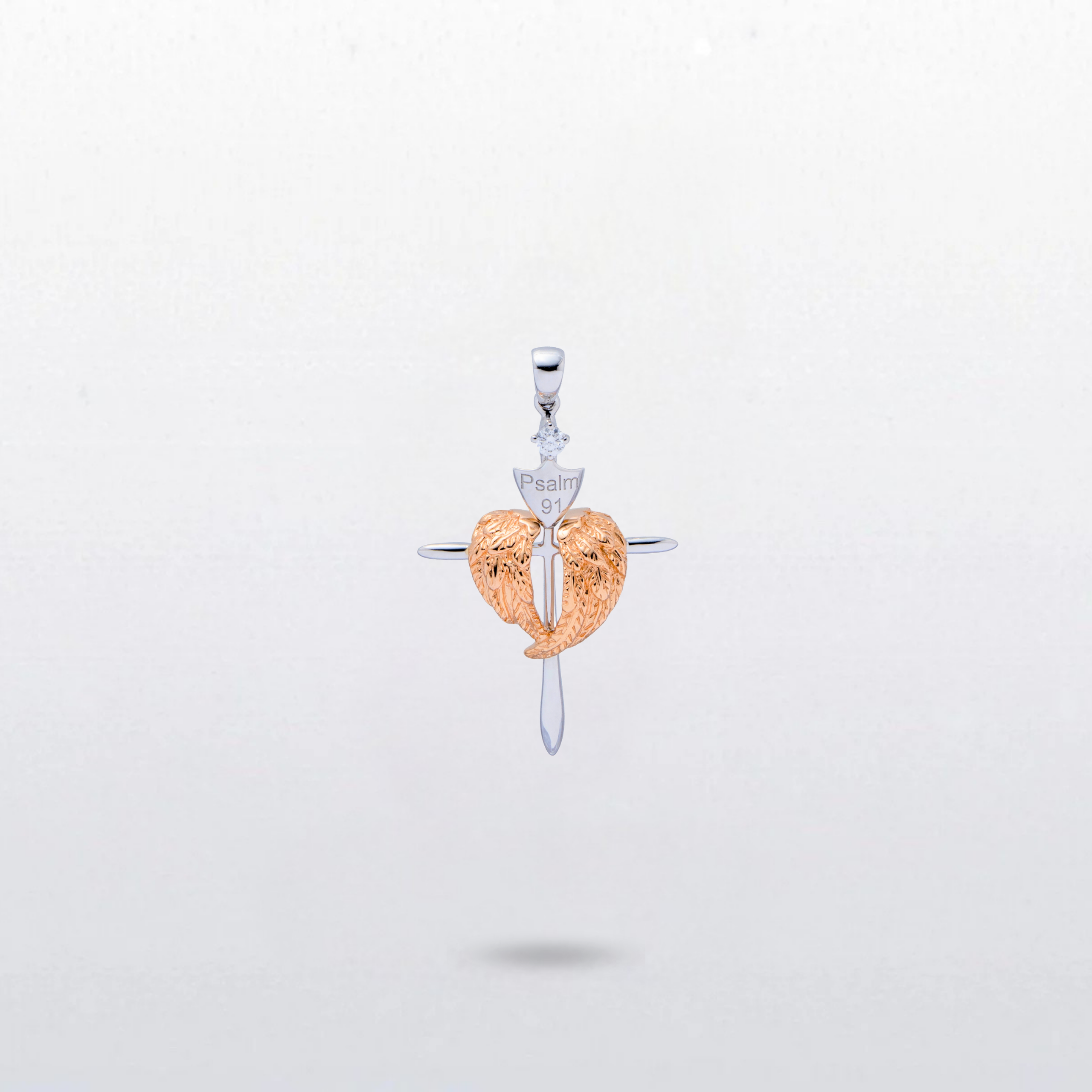 Psalm 91 Cross – Rose Gold Wings, Diamond (S)